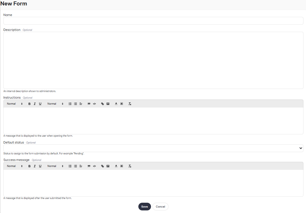 - Description: Explain what the form is, only shown on the admin panel.