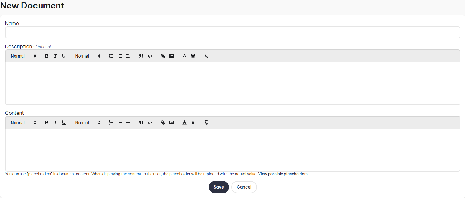 - To see what variables you can use, click on the View possible placeholders in the New Document form.