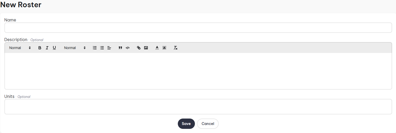 - Description: Brief summary outlining the roster, only seen in the admin control panel.